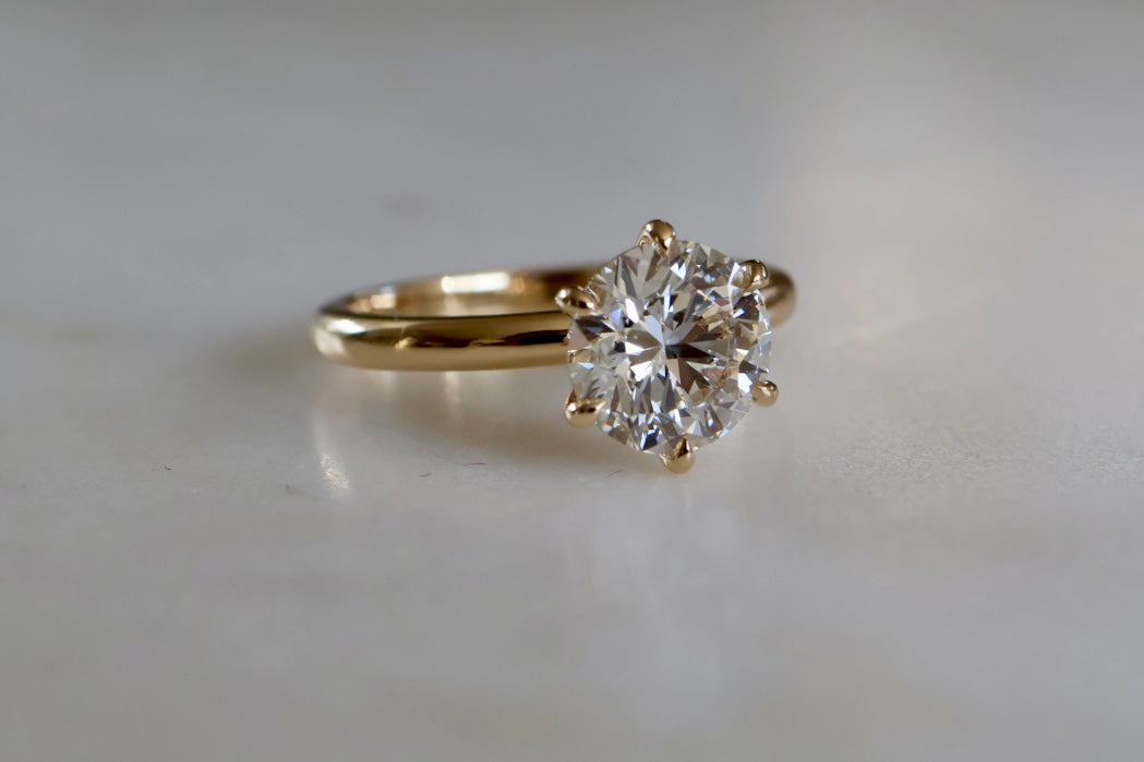 This solitaire design features a 2.00ct round brilliant-cut lab-grown diamond in a timeless six-prong setting, allowing the stone to take centre stage. Designed for elegance and everyday comfort, each ring is handcrafted with care.